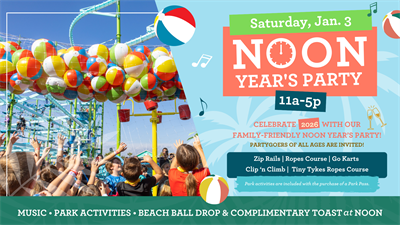 *Access to our Noon Year’s Party activities is only available with a park or food and beverage purchase. Noon Year’s park passes only include the complimentary sparkling toast at noon. Additional food and/or beverages are sold separately.
